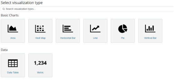 – The visualization view offers numerous visualization types, such as charts (vertical bar diagrams) and data analyses (metrics).